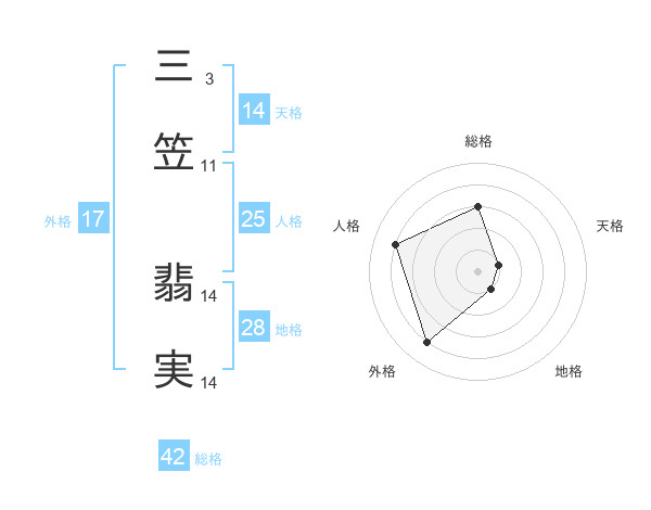 三笠 翡実さんの総格は42画の3点