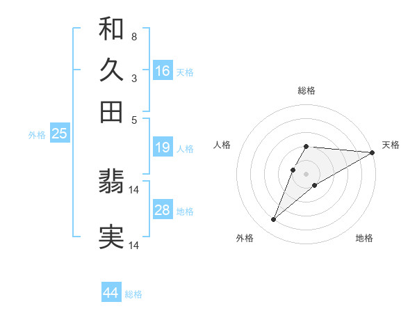 和久田 翡実さんの天格は16画の5点