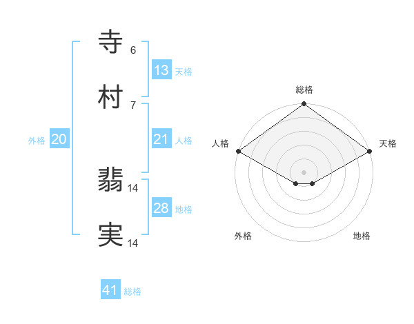 寺村 翡実さんの人格は21画の5点!