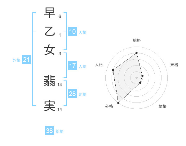 早乙女 翡実さんの総格は38画の4点!