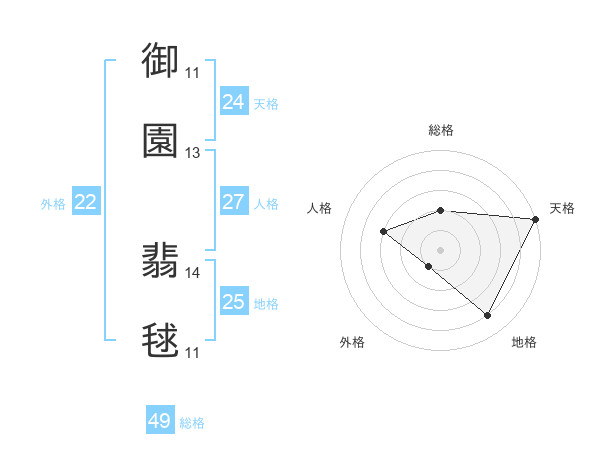 御園 翡毬さんを姓名の画数から五運を鑑定