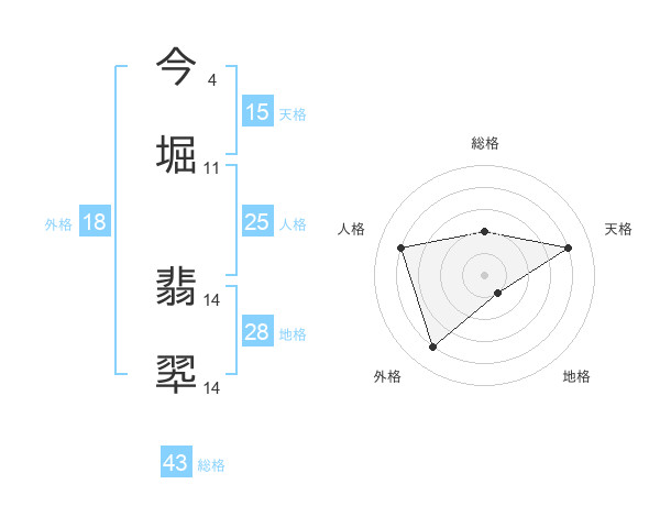 今堀 翡翆さんを姓名の画数から五運を鑑定