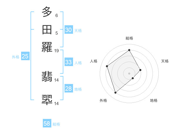 多田羅 翡翆さんを姓名の画数から五運を鑑定