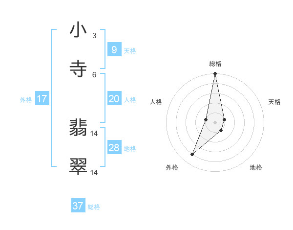 小寺 翡翠さんの総格は37画の5点!