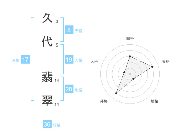 久代 翡翠さんを姓名の画数から五運を鑑定