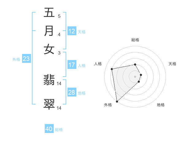 五月女 翡翠さんを姓名の画数から五運を鑑定