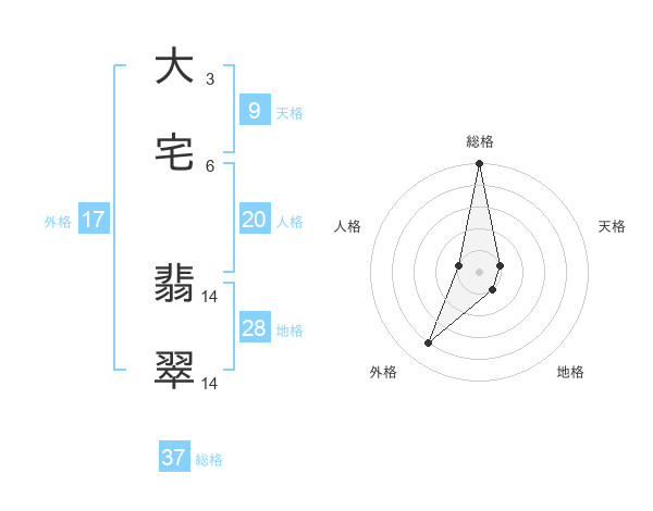 大宅 翡翠さんを姓名の画数から五運を鑑定