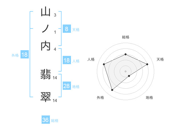 山ノ内 翡翠さんの天格は8画の4点!