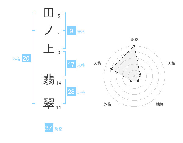 田ノ上 翡翠さんの総格は37画の5点!