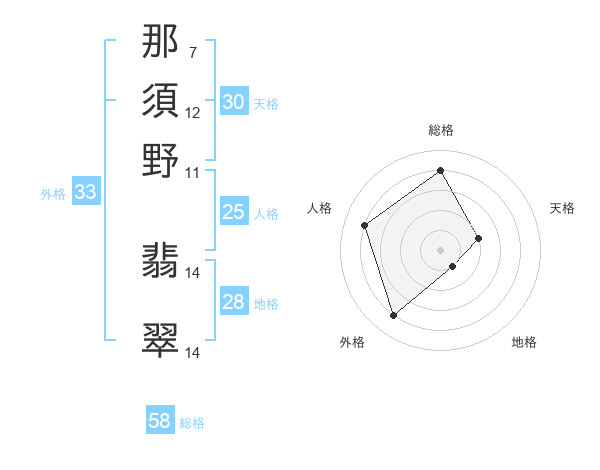 那須野 翡翠さんの総格は58画の4点!
