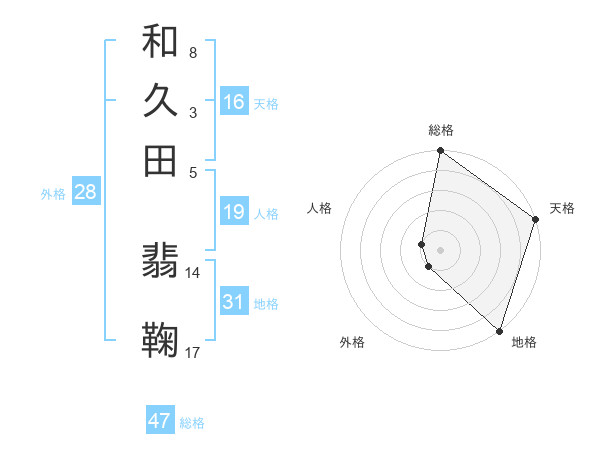 和久田 翡鞠さんの総格は47画の5点!
