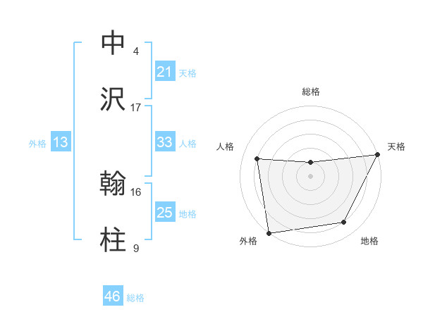 中沢 翰柱さんを姓名の画数から五運を鑑定