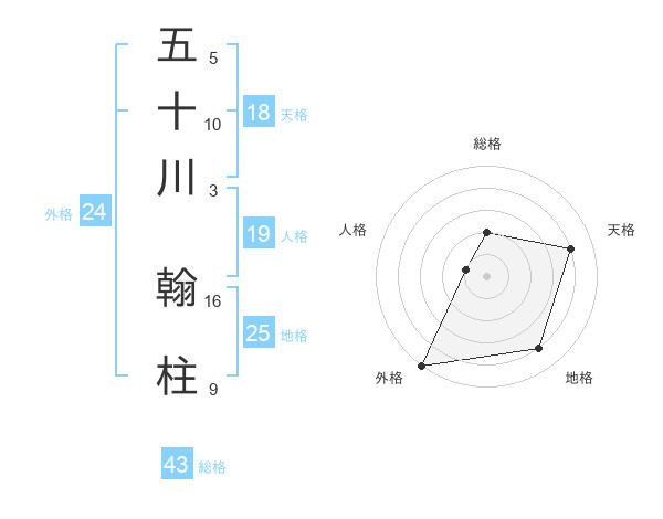五十川 翰柱さんを姓名の画数から五運を鑑定