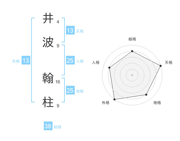 井波 翰柱さんを姓名の画数から五運を鑑定
