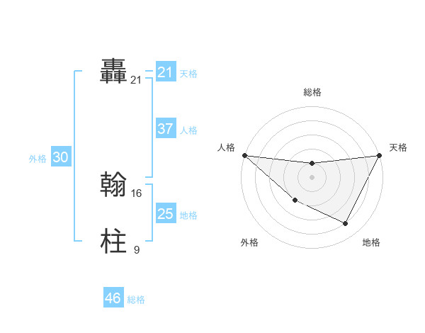 轟 翰柱さんを姓名の画数から五運を鑑定
