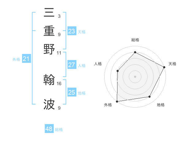 三重野 翰波さんを姓名の画数から五運を鑑定