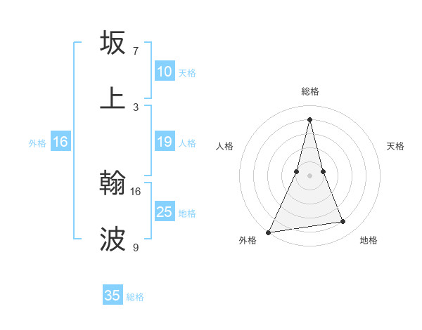 坂上 翰波さんを姓名の画数から五運を鑑定