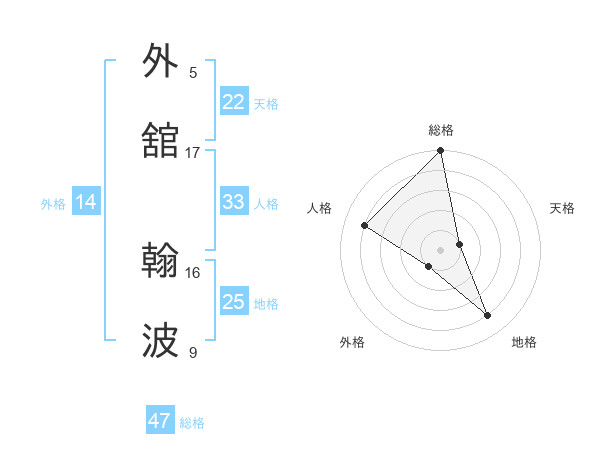 外舘 翰波さんの総格は47画の5点!