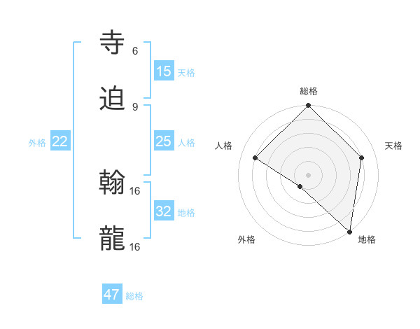 寺迫 翰龍さんの総格は47画の5点!