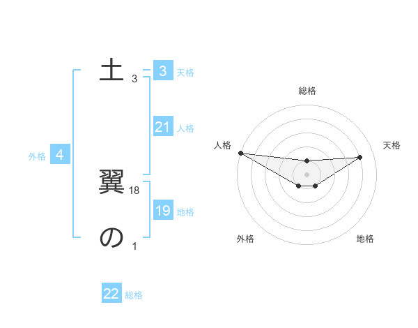 土 翼のさんの天格は3画の4点!