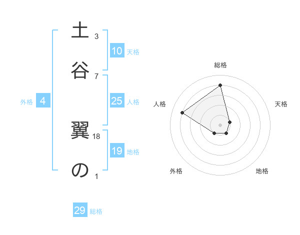 土谷 翼のさんを姓名の画数から五運を鑑定