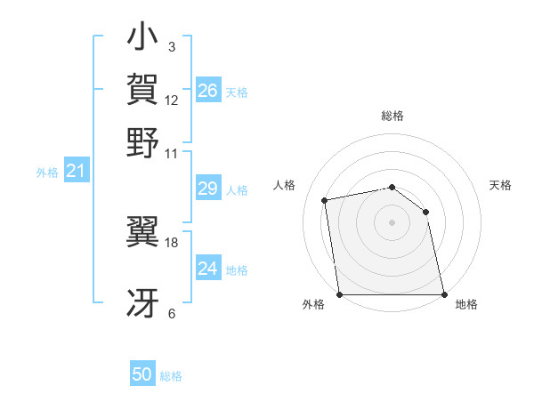 小賀野 翼冴さんを姓名の画数から五運を鑑定