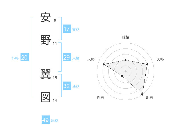 安野 翼図さんの総格は49画の2点!