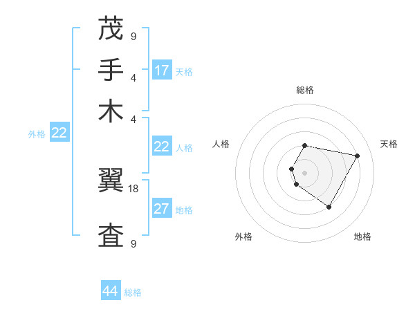 茂手木 翼査さんの総格は44画の2点