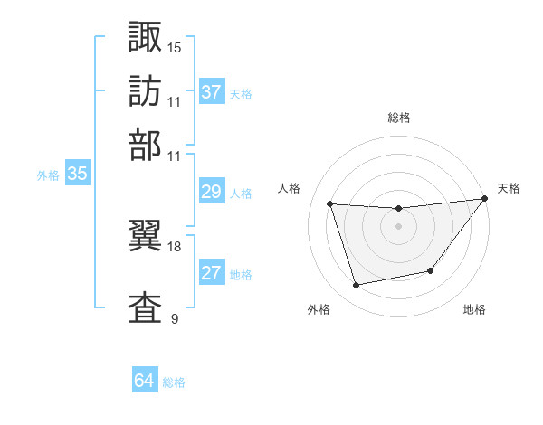 諏訪部 翼査さんの天格は37画の5点!