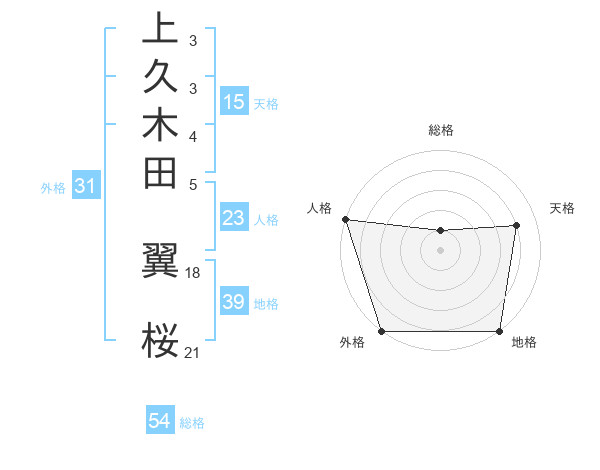 上久木田 翼桜さんを姓名の画数から五運を鑑定