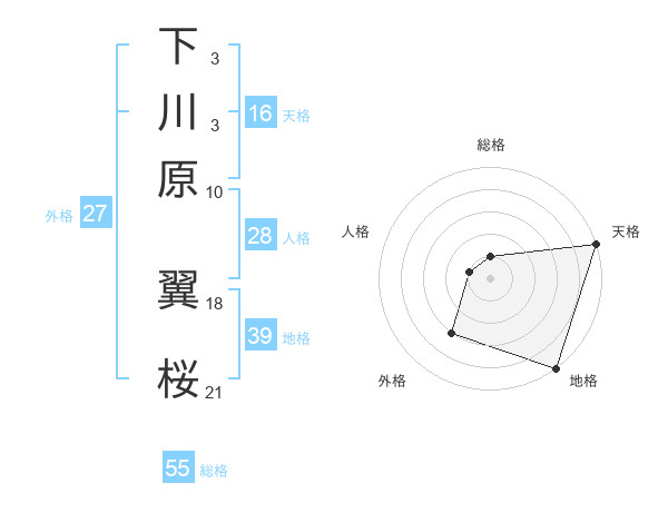 下川原 翼桜さんの総格は55画の1点!