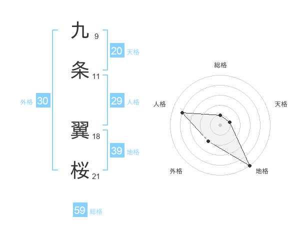 九条 翼桜さんの総格は59画の1点!