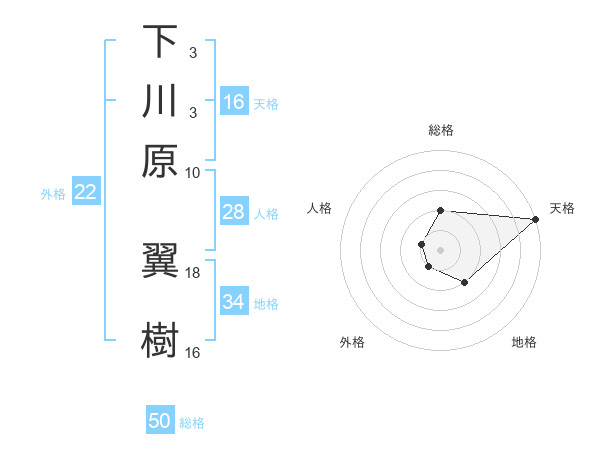 下川原 翼樹さんを姓名の画数から五運を鑑定