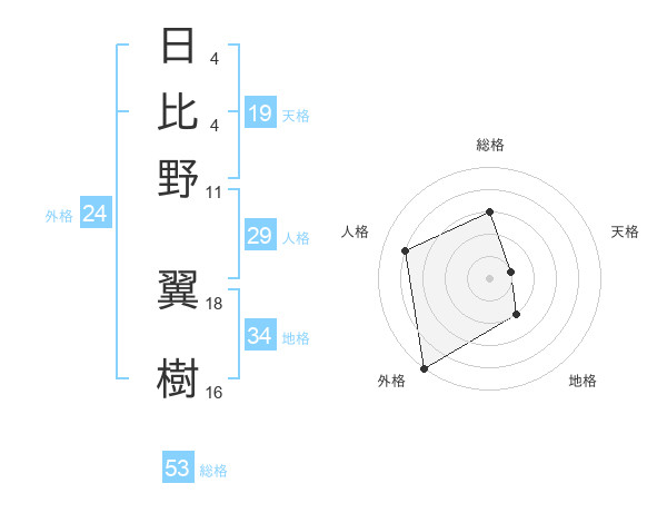 日比野 翼樹さんを姓名の画数から五運を鑑定