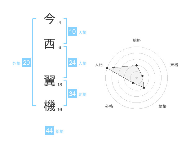 今西 翼機さんの天格は10画の1点!