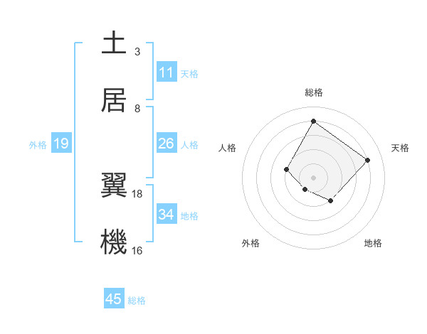土居 翼機さんを姓名の画数から五運を鑑定