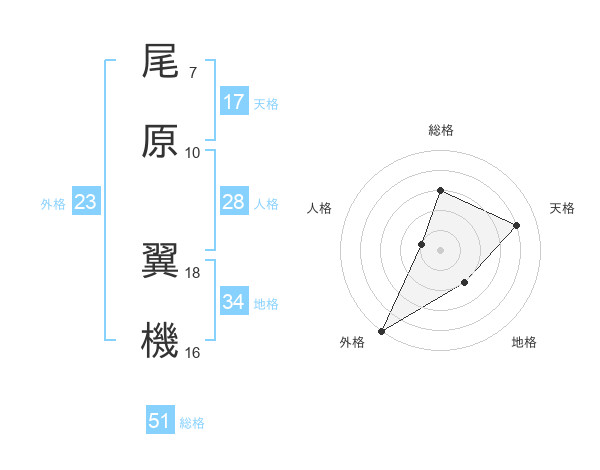 尾原 翼機さんの総格は51画の3点!