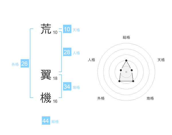 荒 翼機さんの総格は44画の2点!