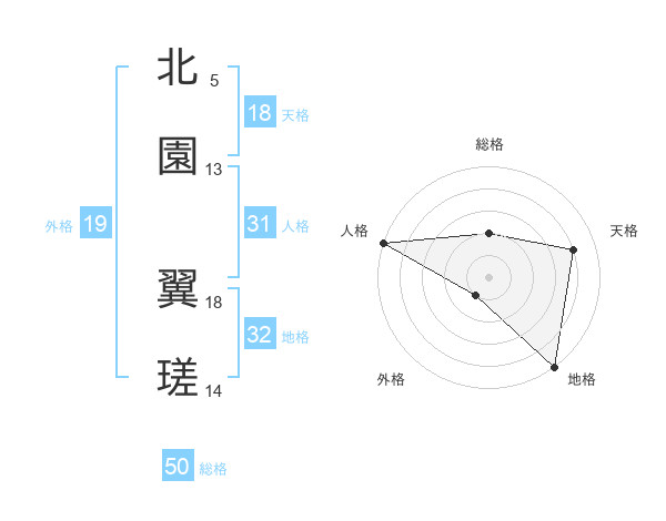 北園 翼瑳さんの総格は50画の2点!