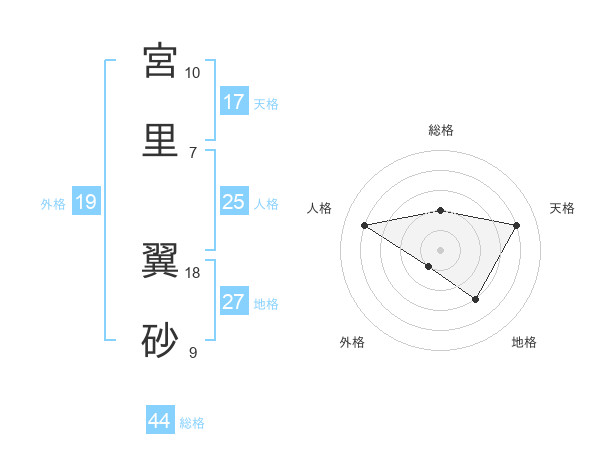 宮里 翼砂さんの天格は17画の4点!