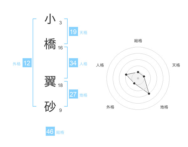 小橋 翼砂さんを姓名の画数から五運を鑑定
