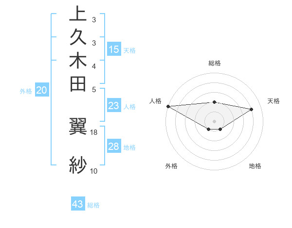 上久木田 翼紗さんを姓名の画数から五運を鑑定