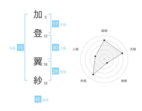 加登 翼紗さんを姓名の画数から五運を鑑定