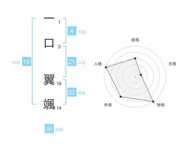 一口 翼颯さんの地格は32画の5点!