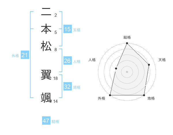 二本松 翼颯さんの総格は47画の5点!