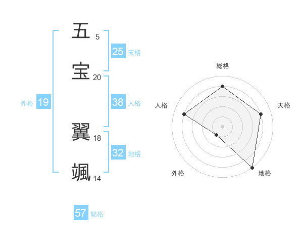 五宝 翼颯さんの総格は57画の4点!