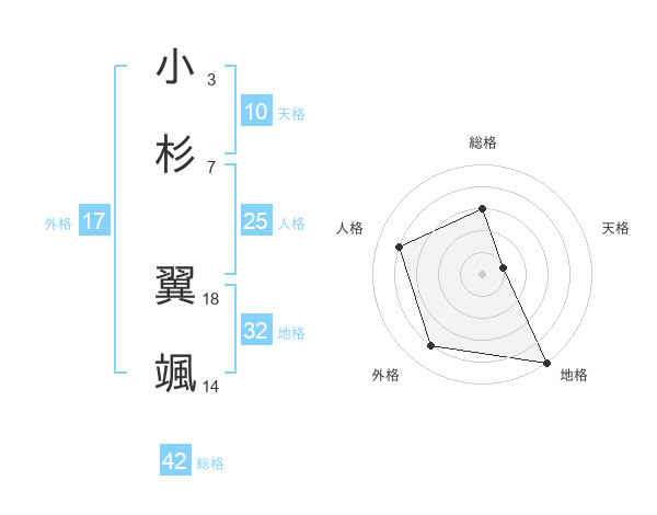 小杉 翼颯さんの総格は42画の3点!