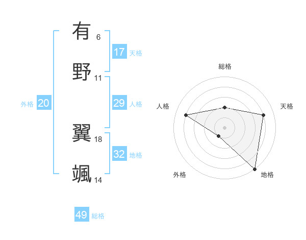 有野 翼颯さんを姓名の画数から五運を鑑定