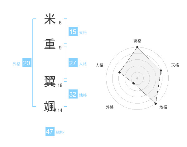 米重 翼颯さんの総格は47画の5点!