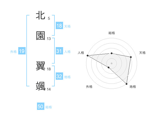 北園 翼颯さんの総格は50画の2点!